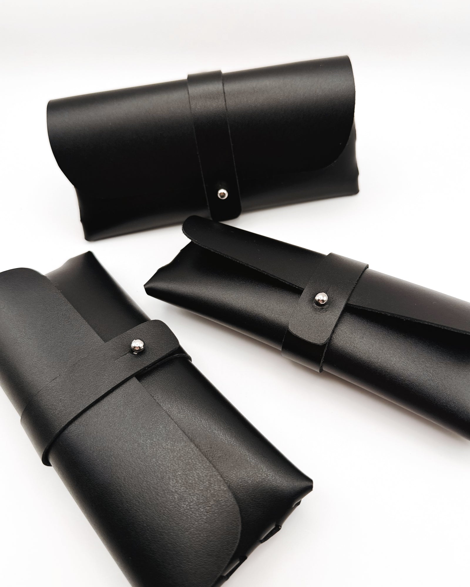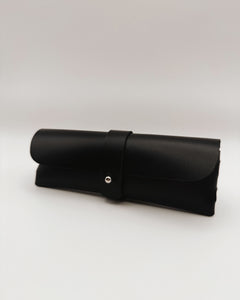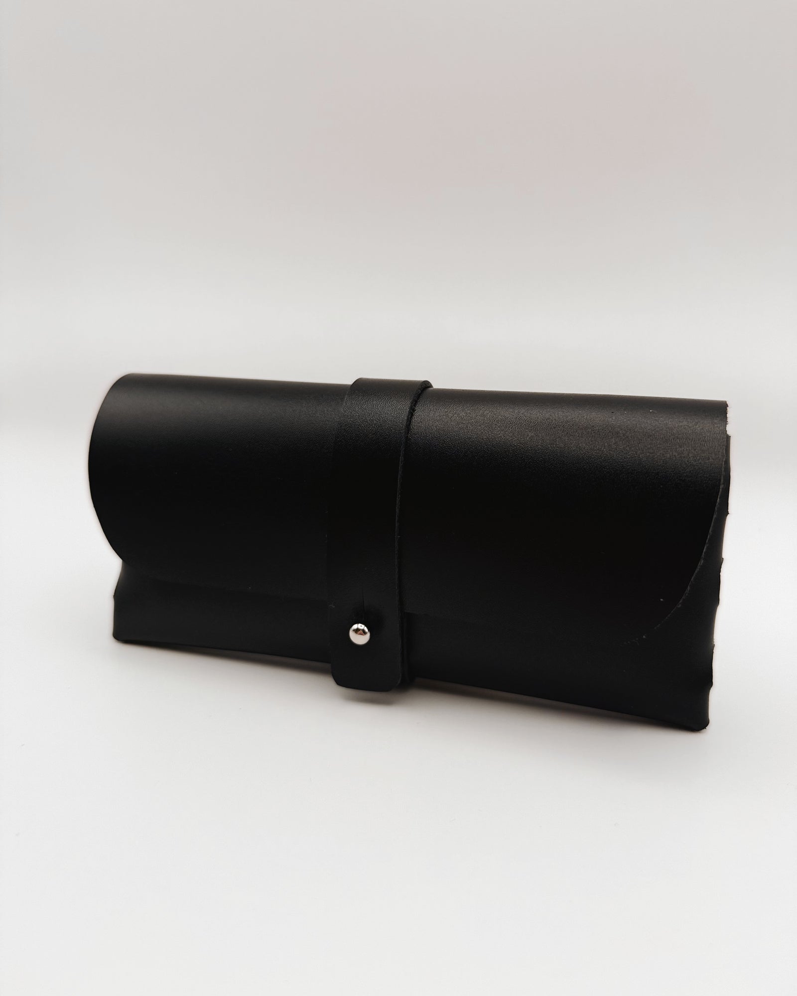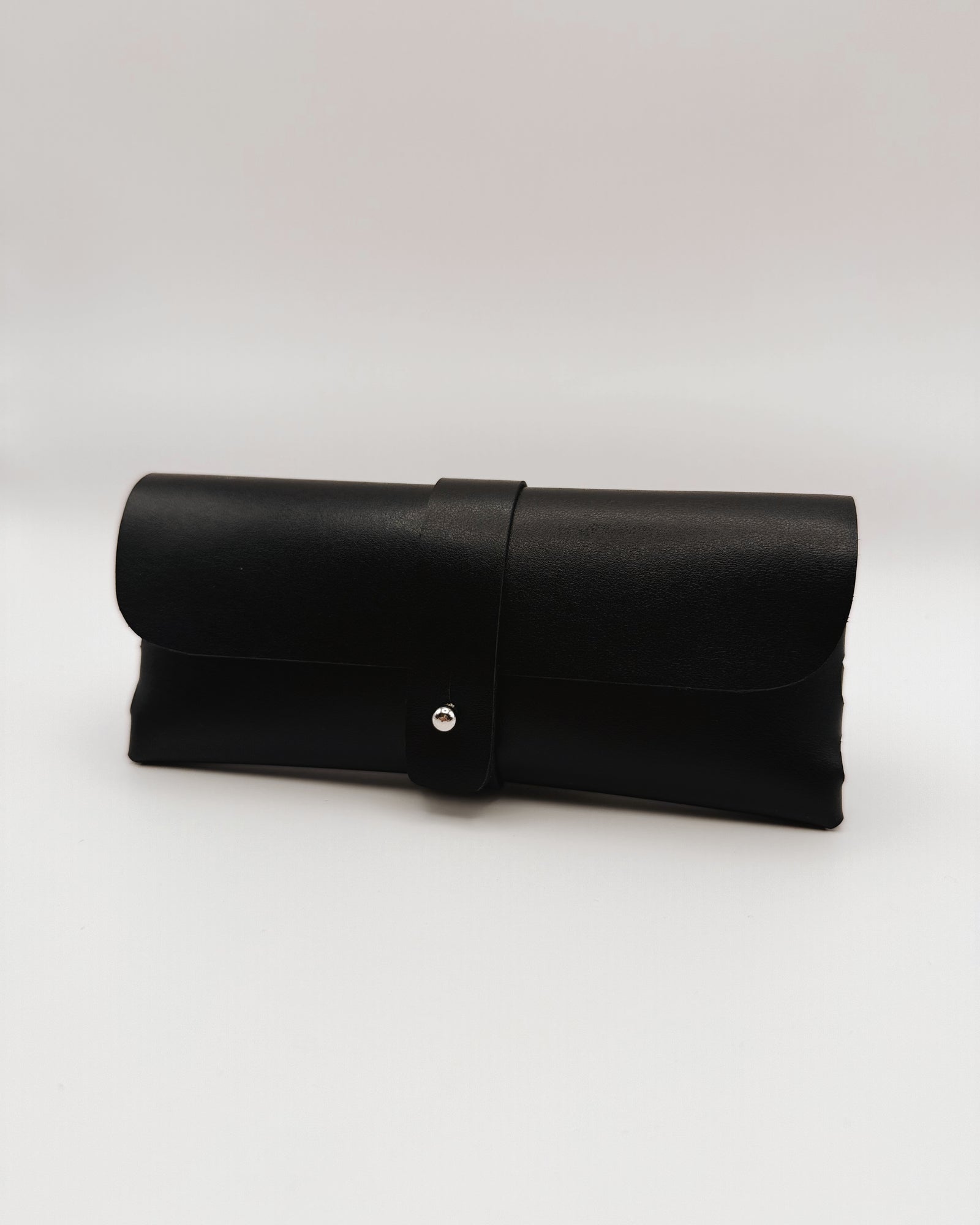 Introducing the Luxe Sunglass Case — a refined essential designed for everyday elegance. Hand-crafted in Denver from soft, pebbled genuine leather, this case protects your frames with a modern fold-over silhouette and a single brass stud closure for a hint of quiet luxury.