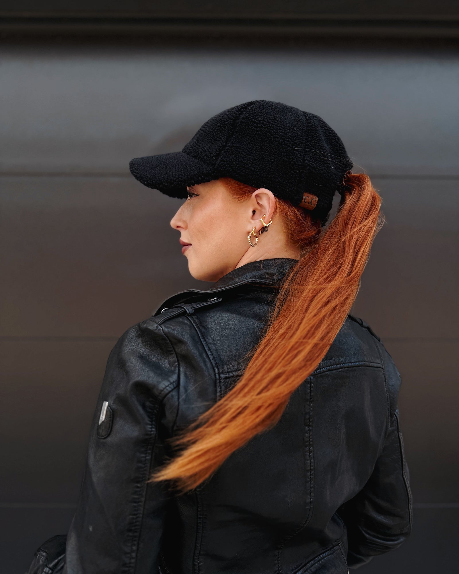 Stay cozy and cool with the Sherpa Baseball Cap in Black! This chic, adjustable cap is your go-to for fall and winter vibes. Dress it up with a leather jacket for a stylish day out or keep it casual with your favorite workout gear on the way to yoga. Warm, comfy, and effortlessly fun—your new seasonal must-have!