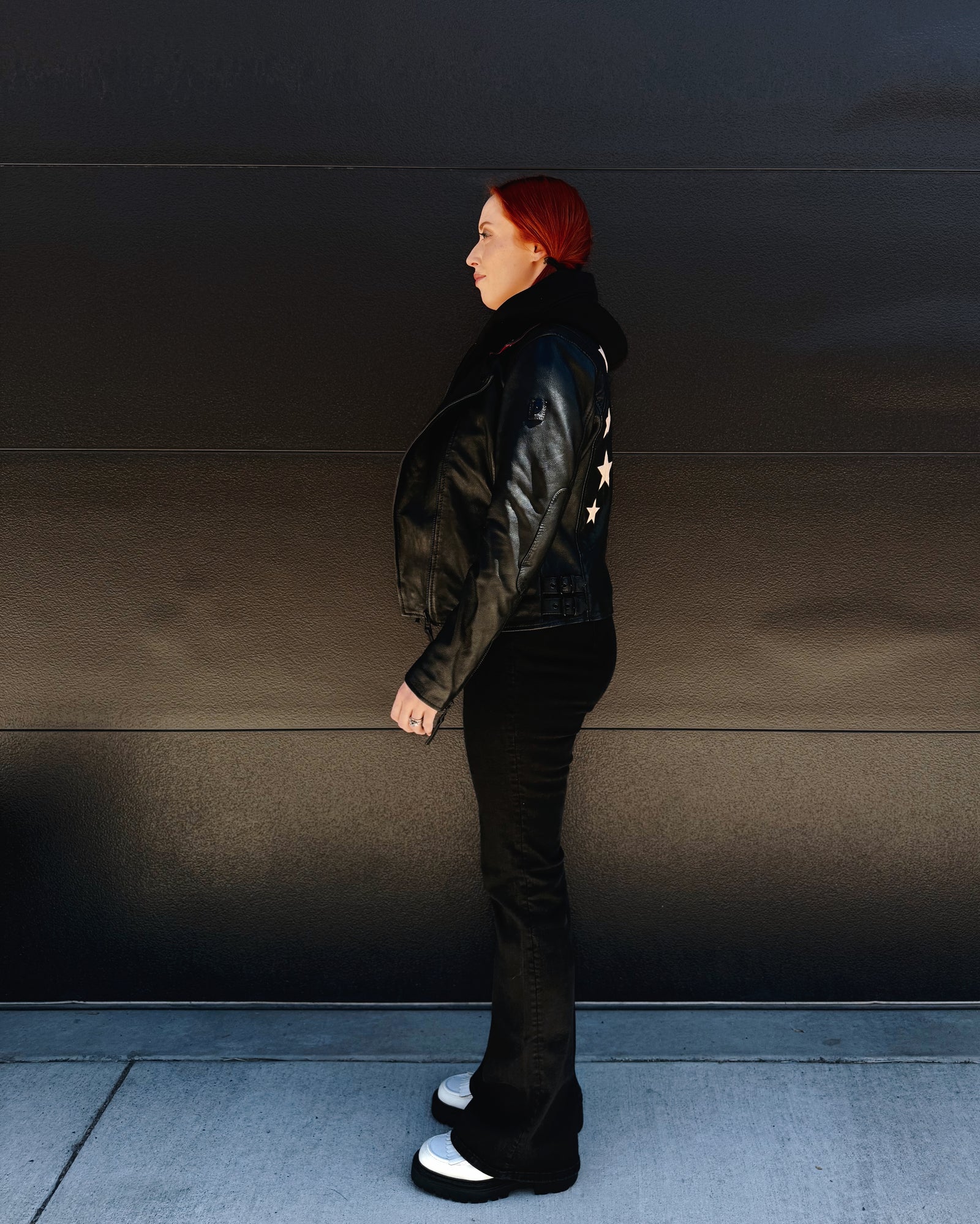 Christyn Star Detail with Hood Leather Jacket