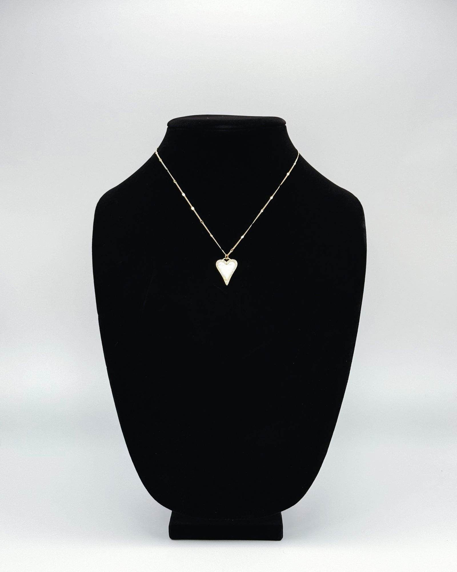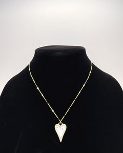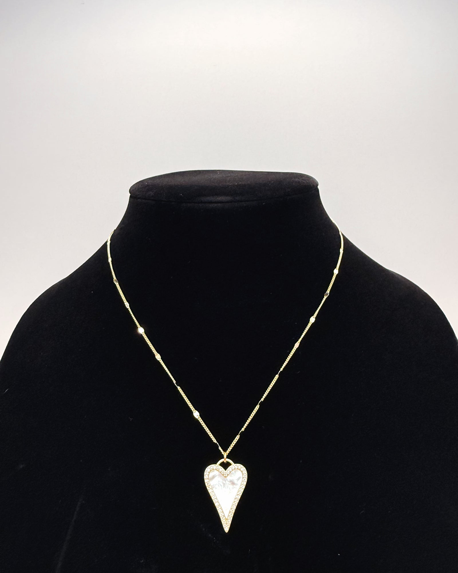 Adorable lightweight pearl heart with micro pave crystals around the perimeter of the pendant. This pendant is attached to a beautiful sequin chain that sparkles in the light.