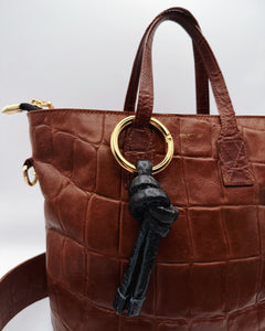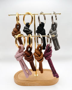 A chic twist on a classic accessory. The Nia Knot features a smooth leather tie and a bold, oversized O-ring clasp that easily secures to any bag handle or strap. Its sophisticated shape adds a touch of polish to your everyday essentials. Designed for women who appreciate thoughtful details, the sturdy gate keep clasp ensures your keys stay exactly where you need them. Upgrade your keys with the Nia Knot.