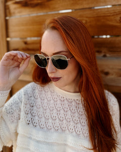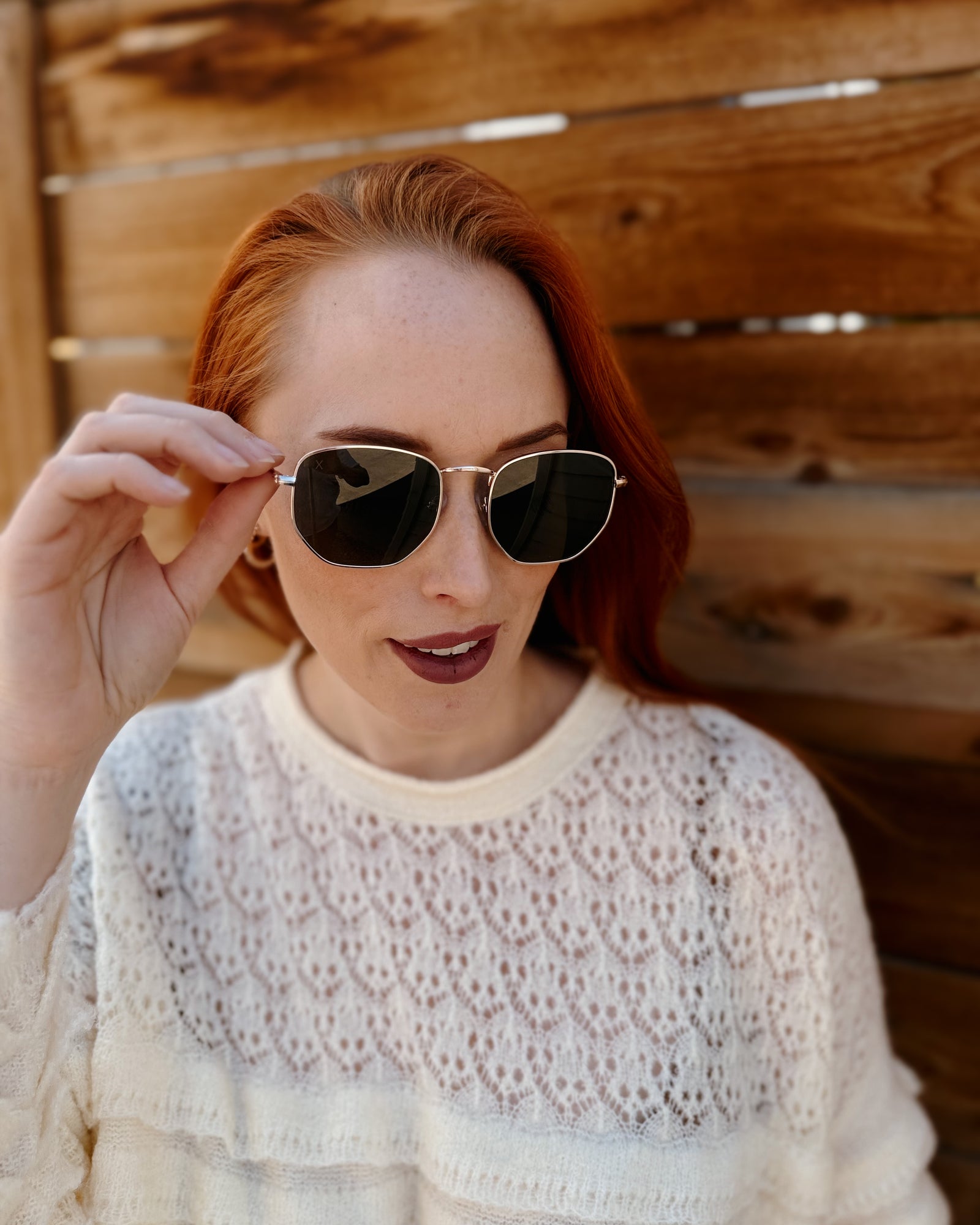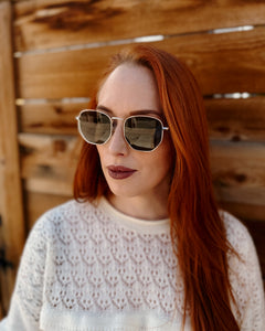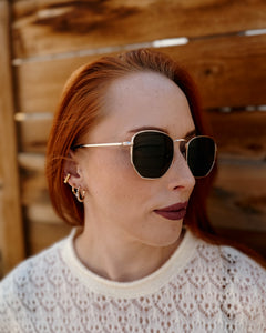 This circular frame with geometric edges showcases shiny metal details, polarized lenses, adjustable nose pads, and rubberized temple caps for all-day comfort. Pair me with vintage denim, graphic tees, and your favorite pair of boots for the ultimate in indie-cool fashion.