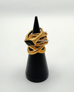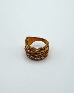 Elevate your style effortlessly with the Holiday Bling Ring. This gold-plated stainless steel piece features sparkling Cubic Zirconia gems that create a layered, stacked effect without the hassle of multiple rings. Designed for sophistication, it adds a refined sparkle to any outfit. To preserve its shine, avoid exposure to water such as showers or pools.