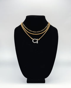 This playful necklace features a gold-plated stainless steel box chain paired with a silver-plated horsebit clasp. Unscrew the clasp to stylishly wrap the necklace around your head, then screw it back to secure your look with a touch of Western glam charm. Perfect for adding a fun twist to your accessory game!